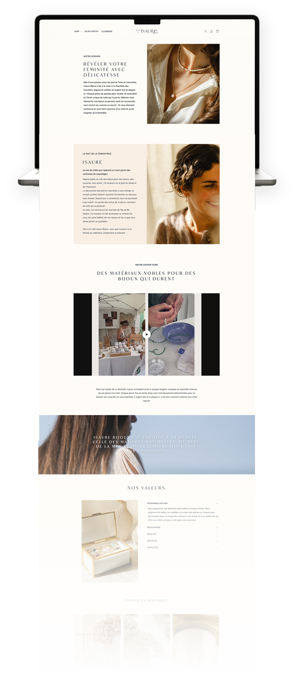 Chaque site web e-commerce est créée sur mesure, reliée à votre grande vision (celle qui vous fait un peu peur, celle qui vous fait vibrer). Il n’y en aura jamais deux pareils. Parce que vous êtes unique.